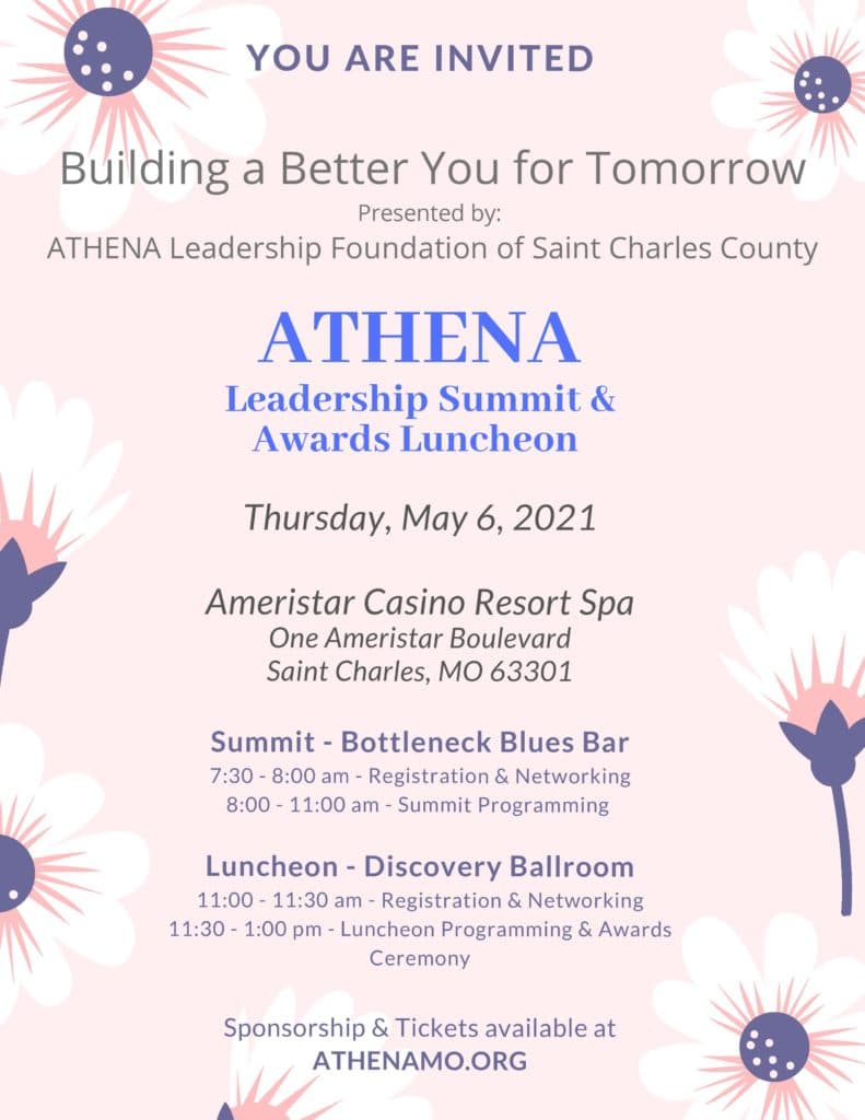 ATHENA Leadership is partnering with two local non-profits to support area women with a feminine hygiene product donation drive at our upcoming Summit and Luncheon. SNAP benefits do not allow for the purchase of these critical (and expensive) products. Crazy, we know, but we can help! Sts. Joachim and Ann Care Service and Youth in Need will use these products to help stock their pantry, support teen clients, and in their shelters. ATHENA is asking for donations of pads, tampons, youth-sized bras, and youth-sized underwear to be brought to the ATHENA Summit and Luncheon on May 6, 2021. Thank you for supporting women and girls in St. Charles County.